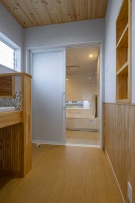 玄関、リビング、ランドリーなど、随所に大工の“技”を吹き込む。