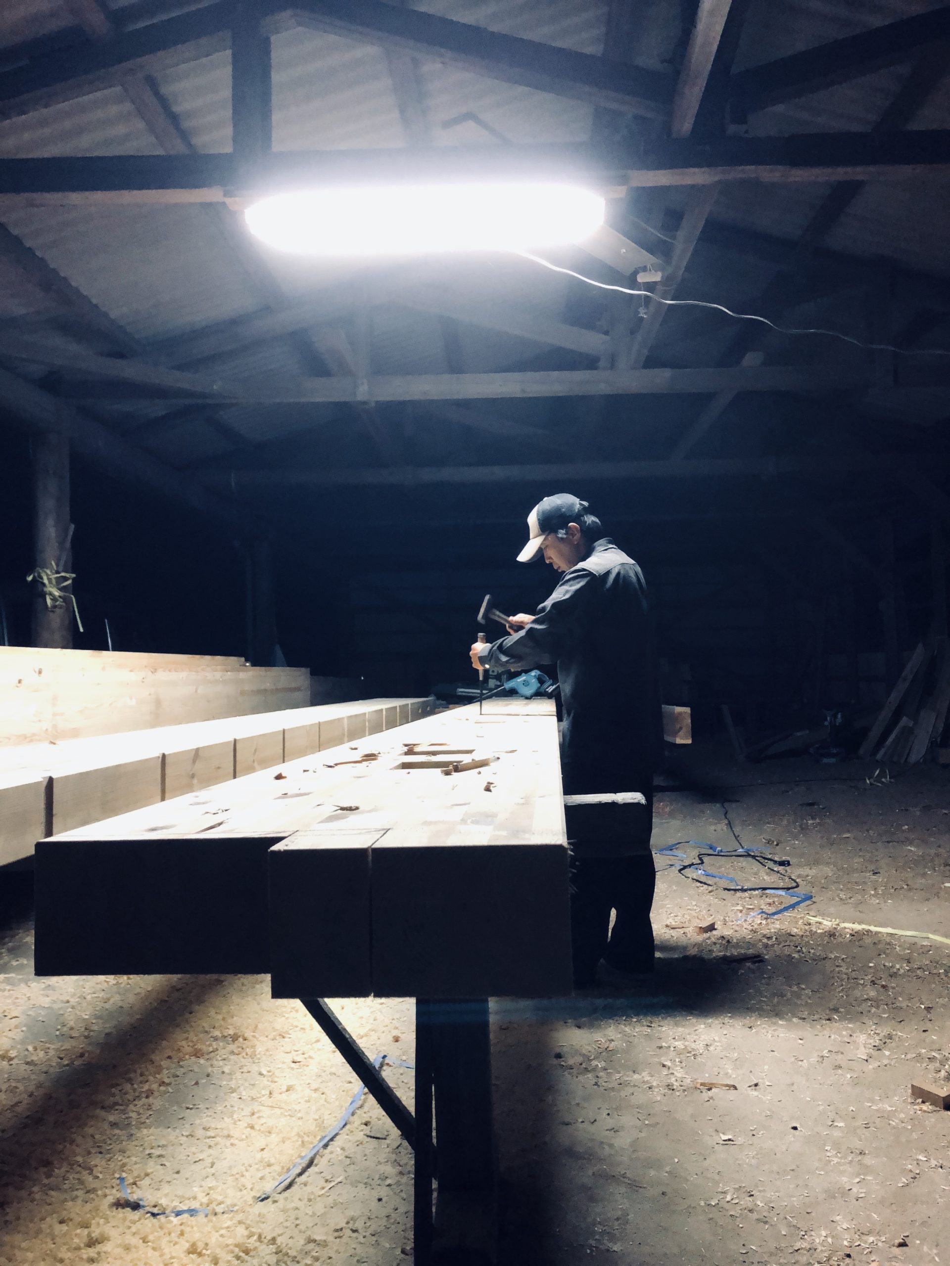 刻みの場所をとるので墨付けが終わったら刻みます。 カコイイ∑(゚Д゚)