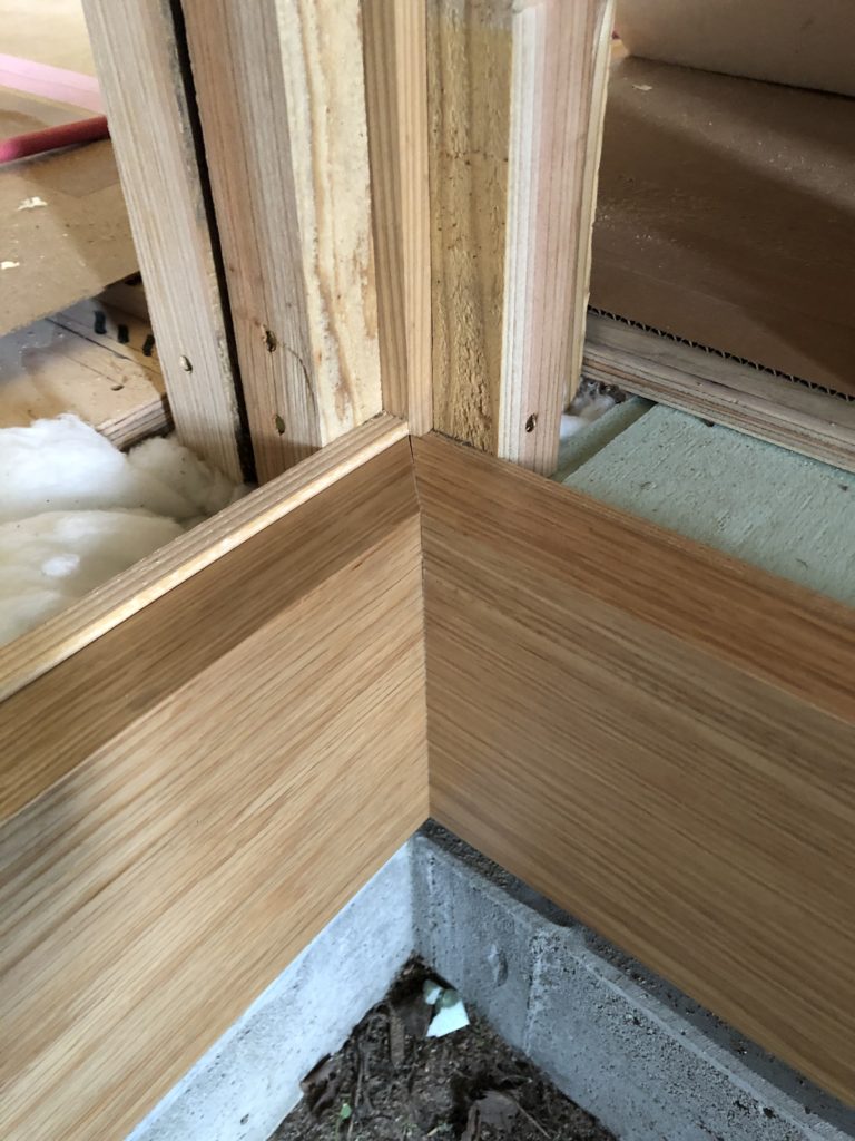 下地は下地板を1尺(303ミリ)ピッチで柱の面に揃うよう取り付けてます。