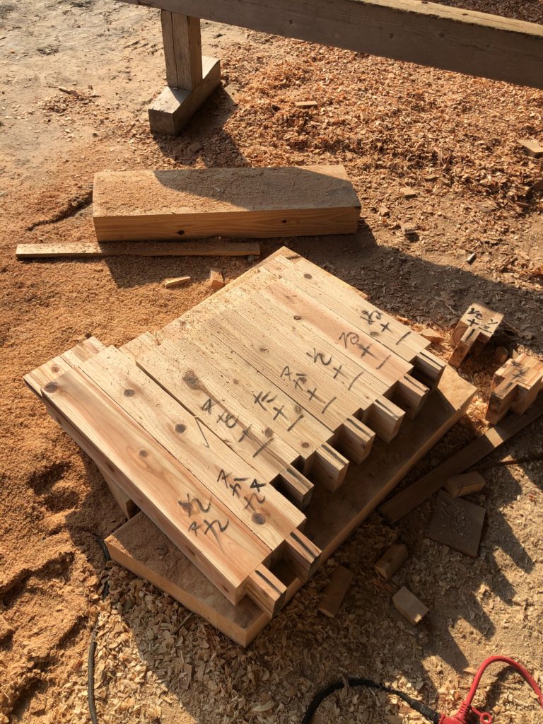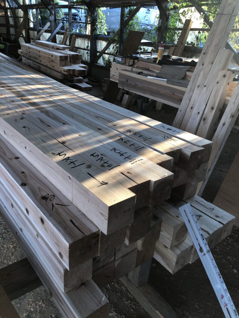 柱の長さ、ホゾ(差込み部)向きに気をつけます。