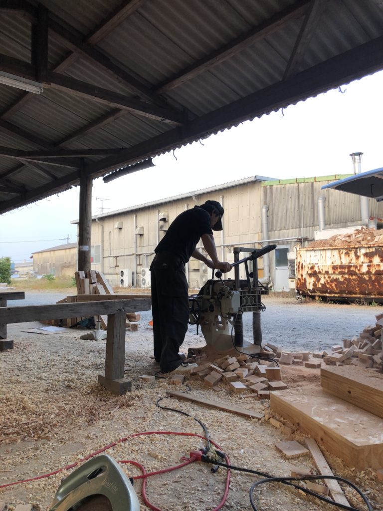込み栓穴(柱の抜けないようにする栓)を掘ったり