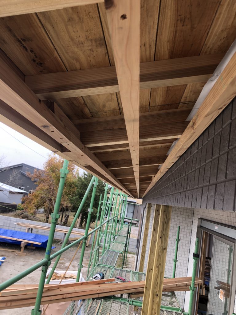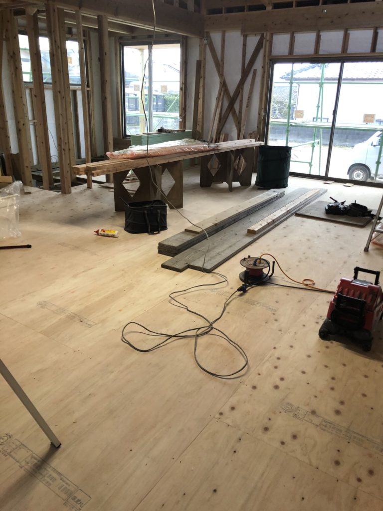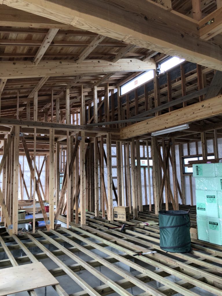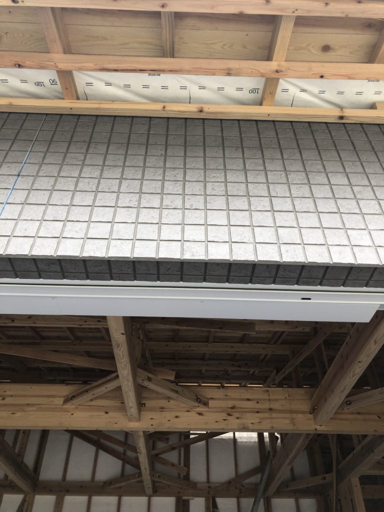 根太が終わったら40厚(4センチ)断熱材を敷き詰めます。