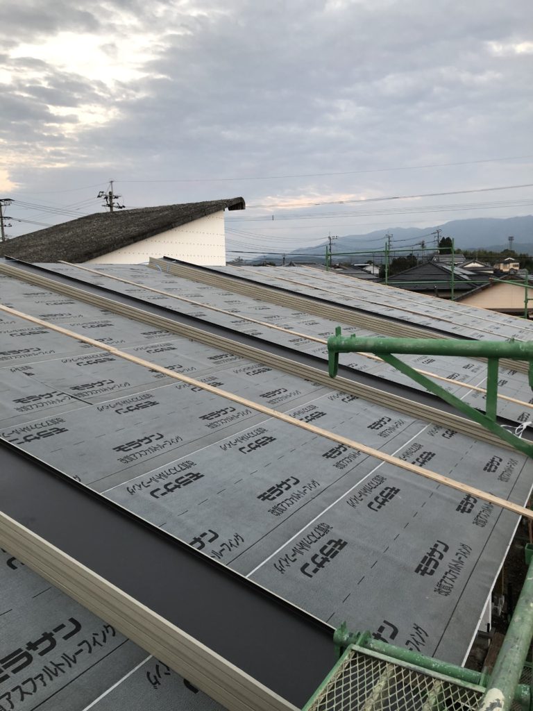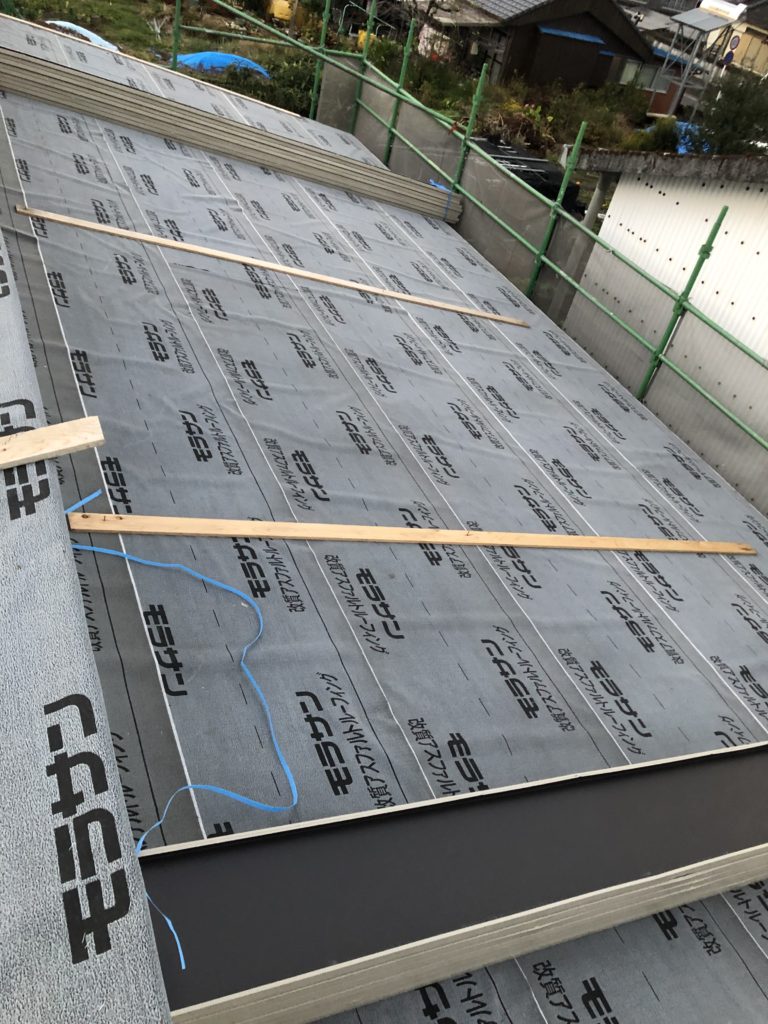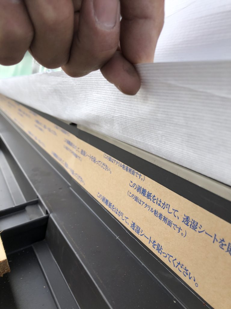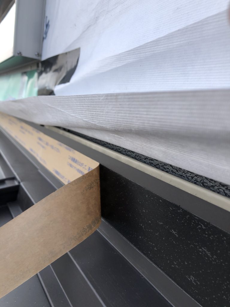 段違い屋根の下屋部は防水両面テープを貼ってます。