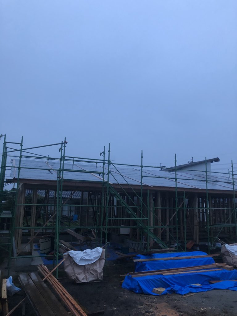 この日は午後から雨予報だったので雨が降る前に屋根仕舞いを終わらせねばと。