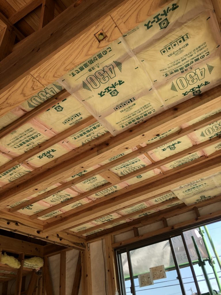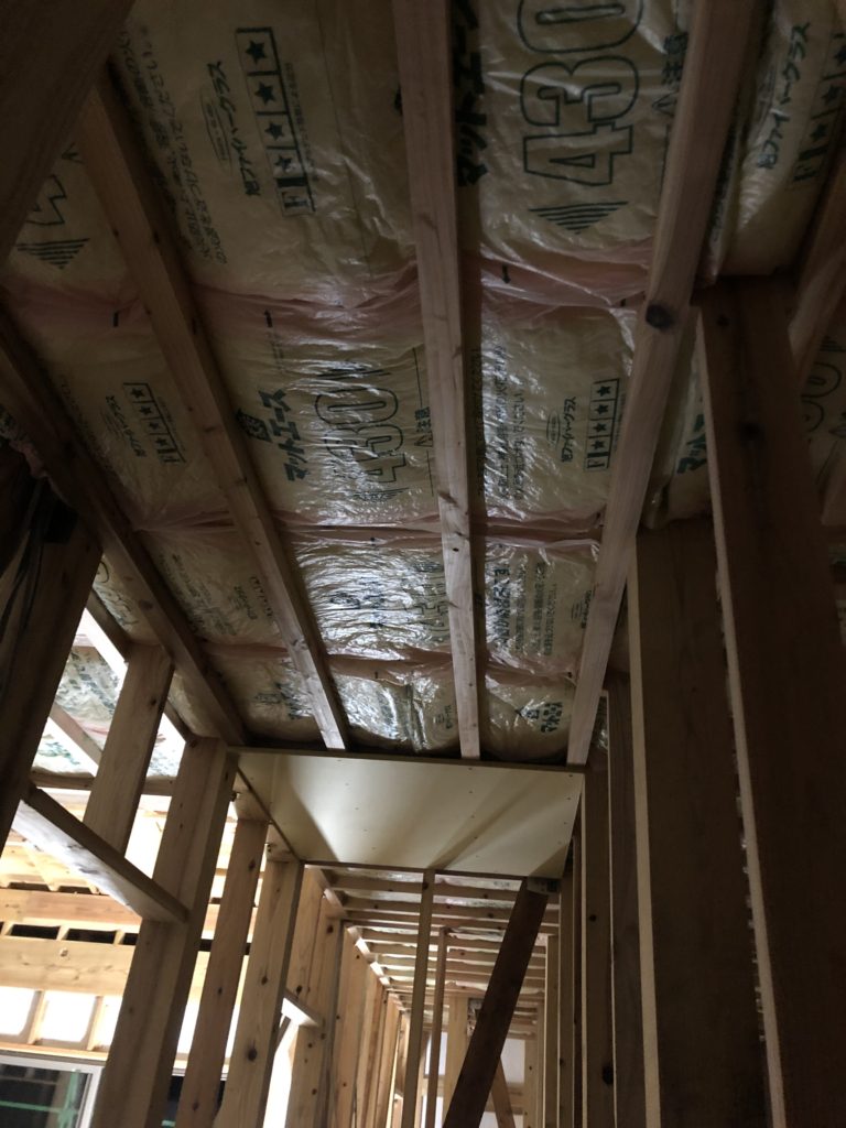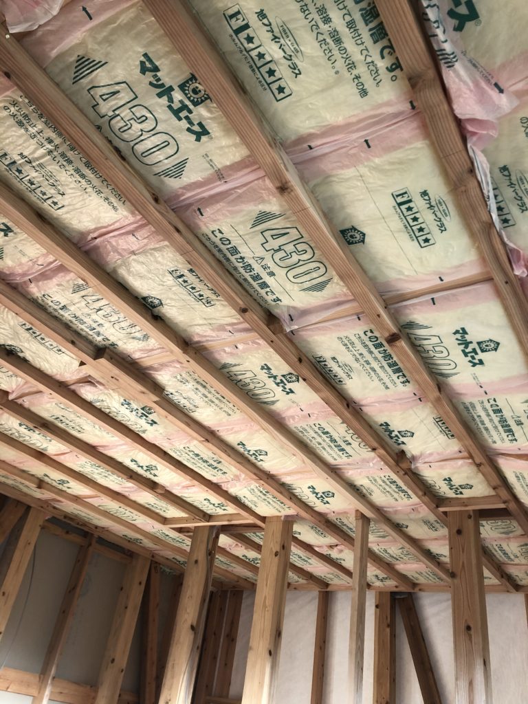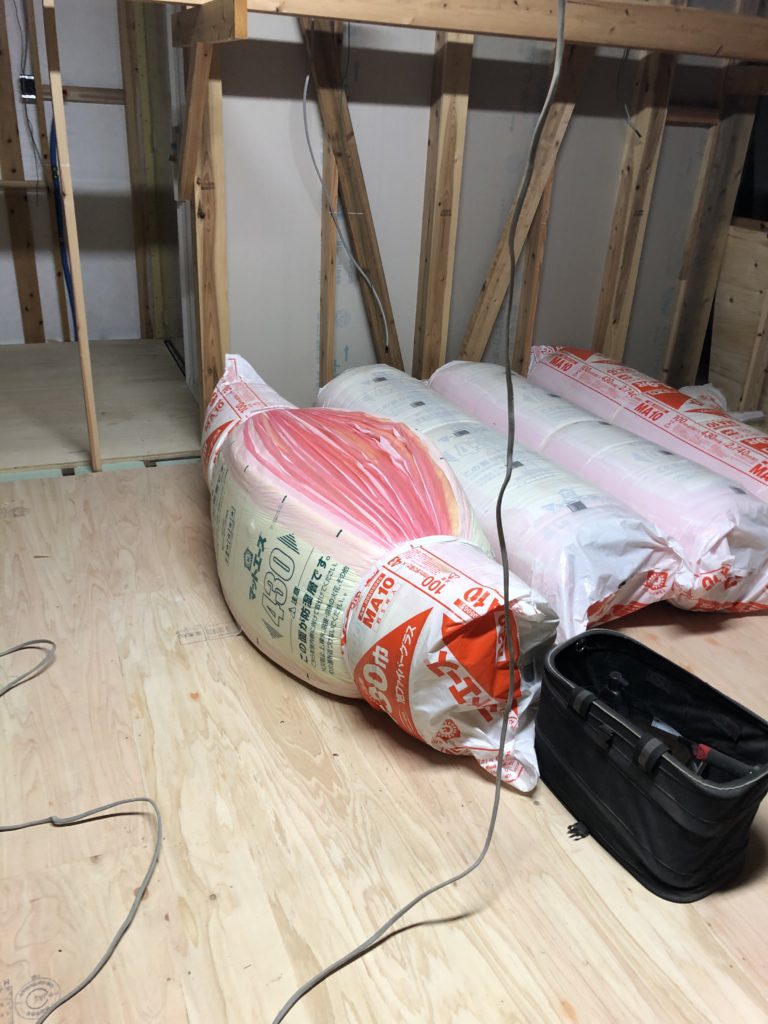 下地が済んだら断熱材を敷き詰め。