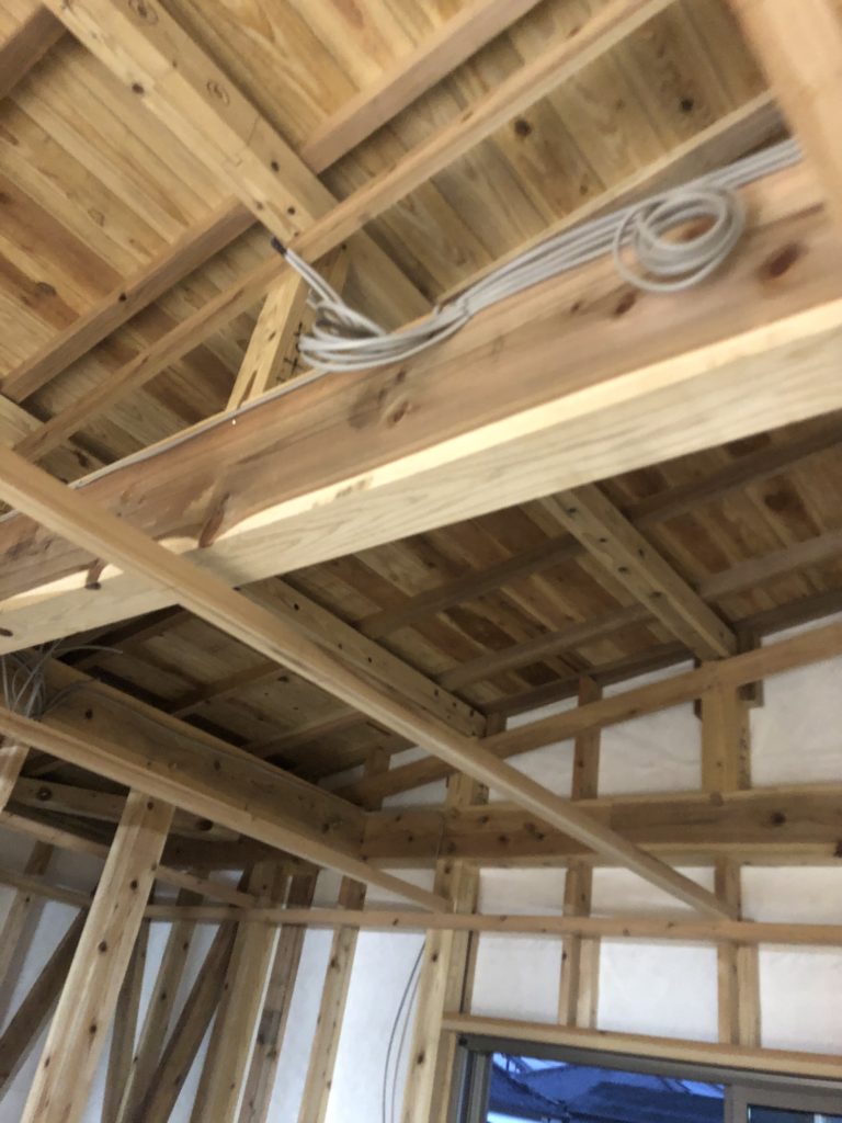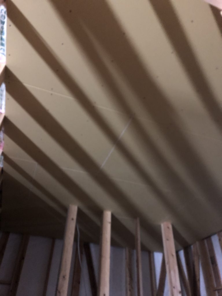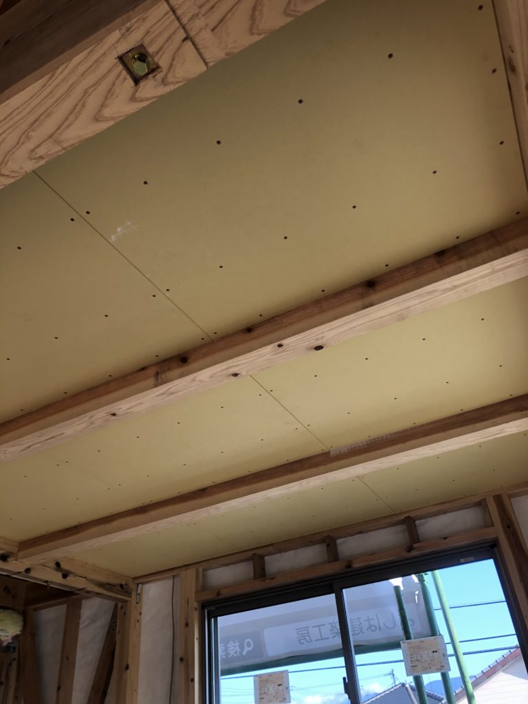 天井貼って少しづつ部屋らしくなってきます。