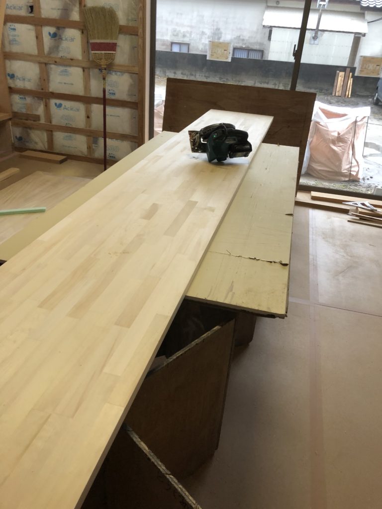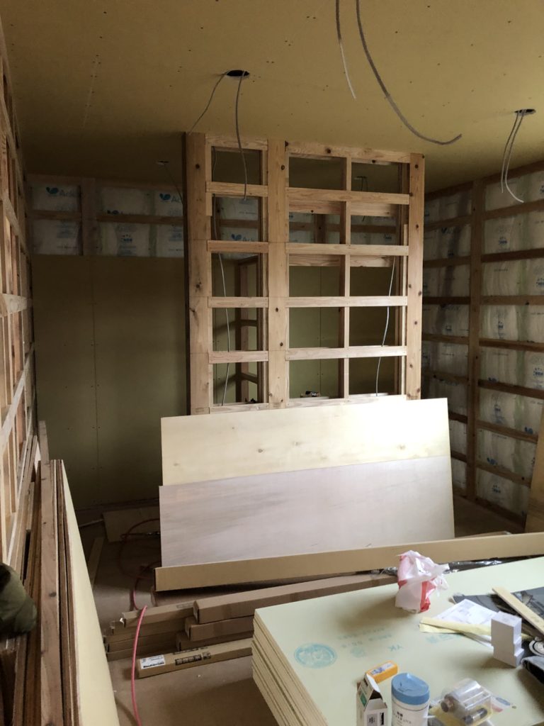 そしてシューズクロークに棚を、『コ』の字型で作ります。