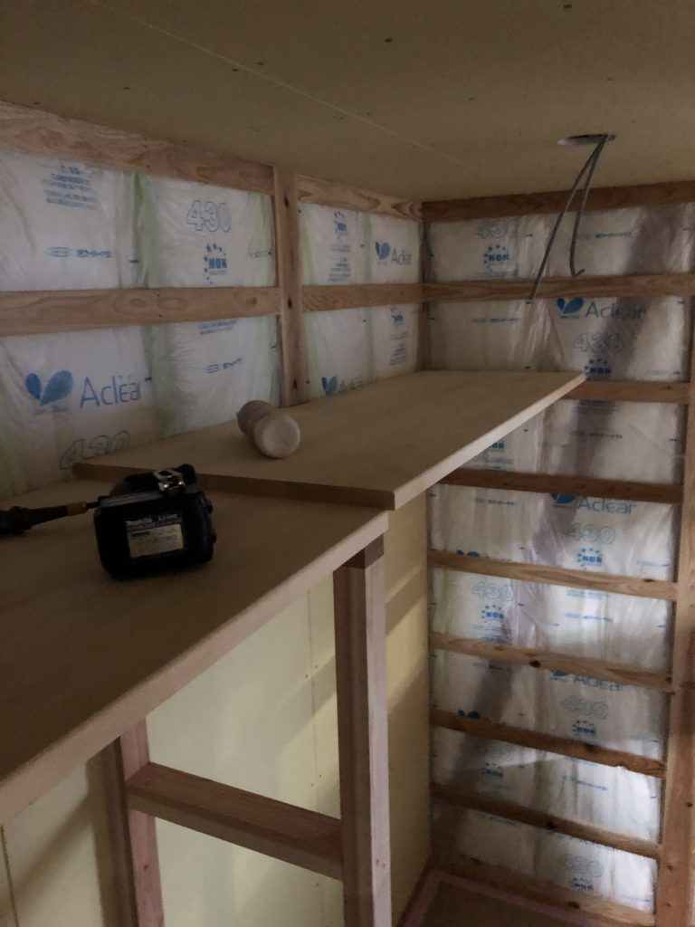 壁は針葉樹合板仕上げです。