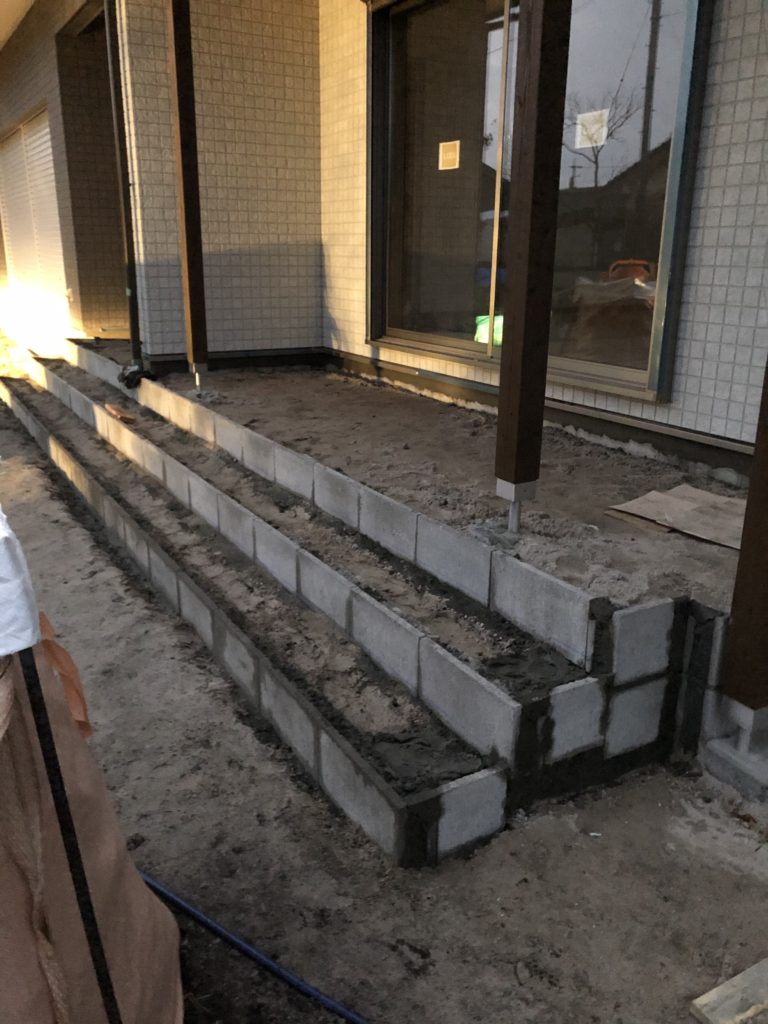 次は玄関、ポーチ、タイルデッキの生コン打ちです。