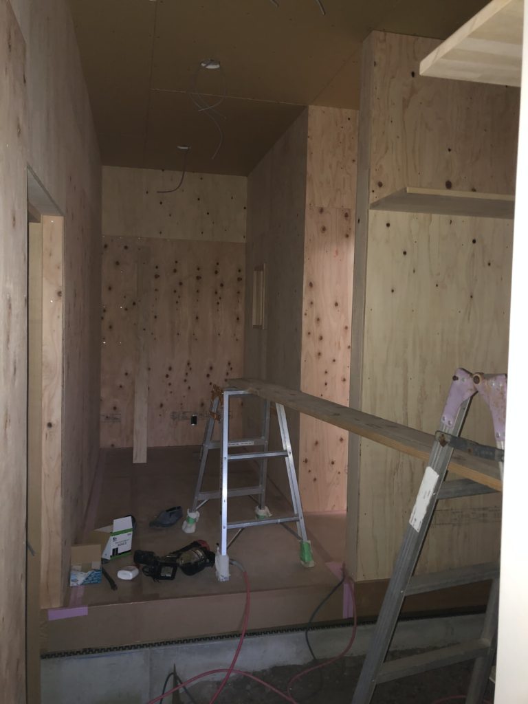 壁は針葉樹合板仕上げです。