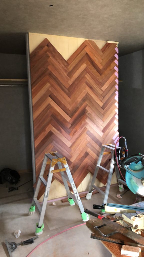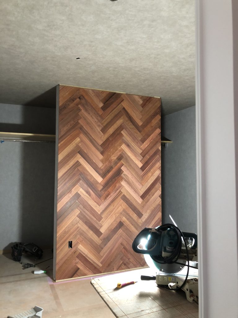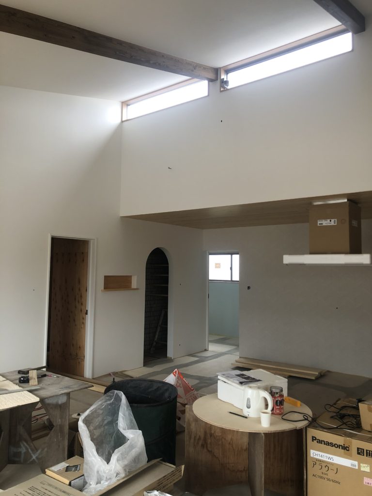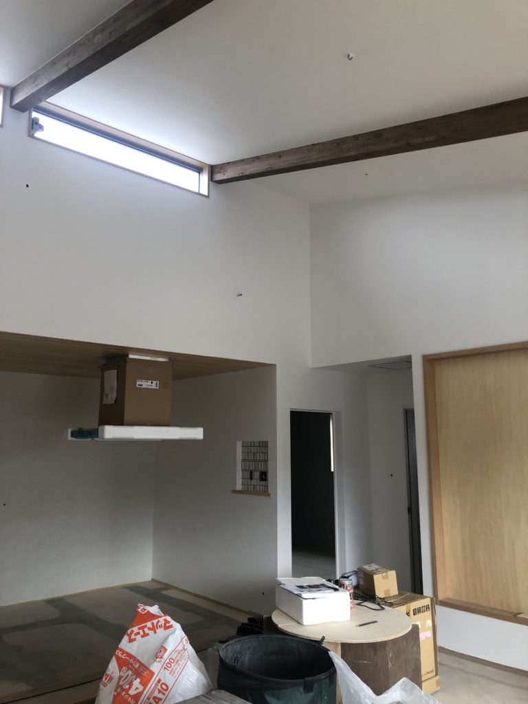ガレージに取りかかってる頃、家の方ではクロス工事が終わってました😲