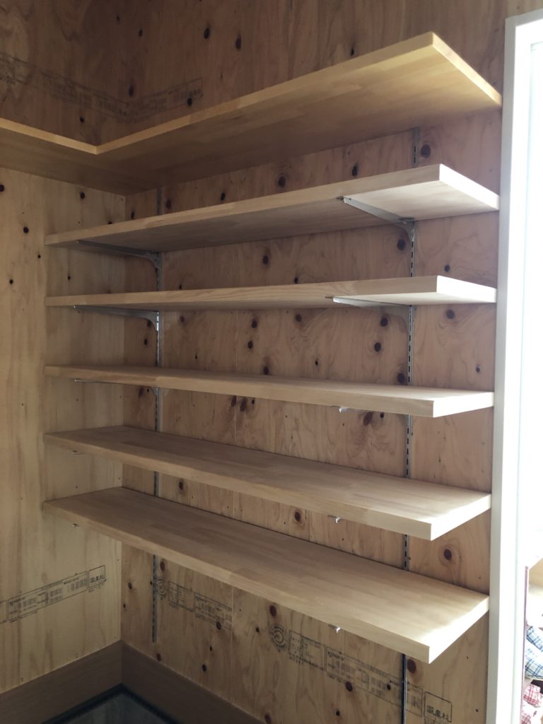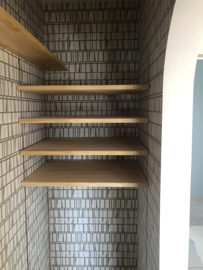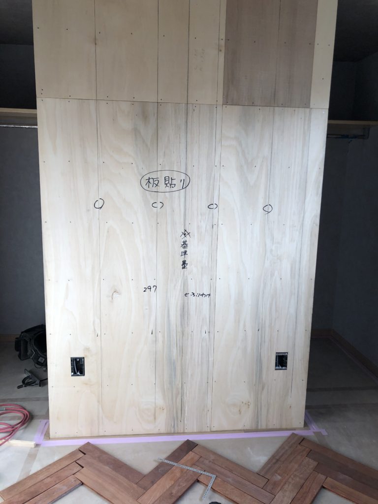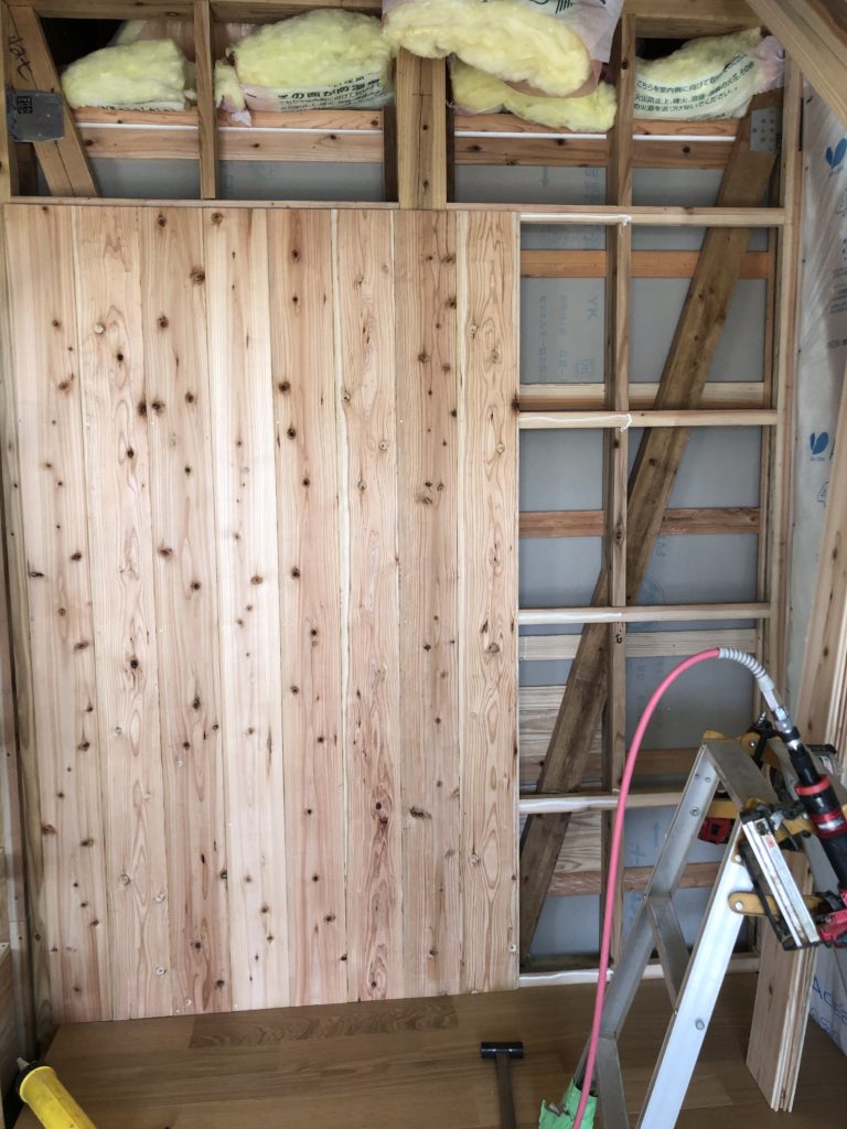 湿気が溜まりやすいので調湿効果を考えて板貼りです。