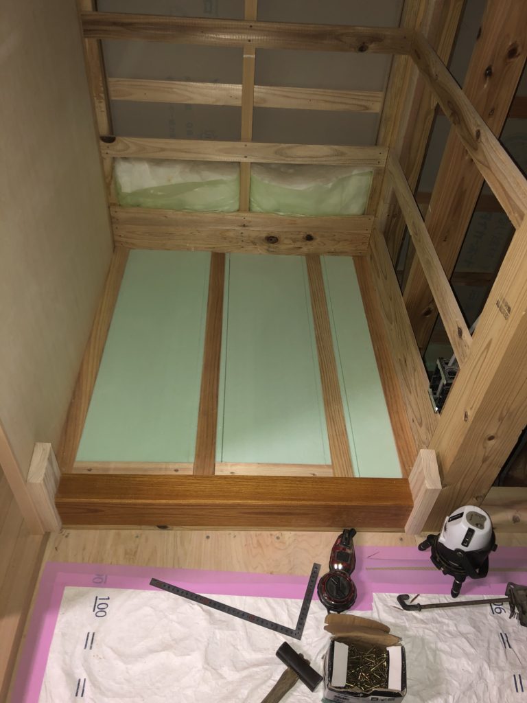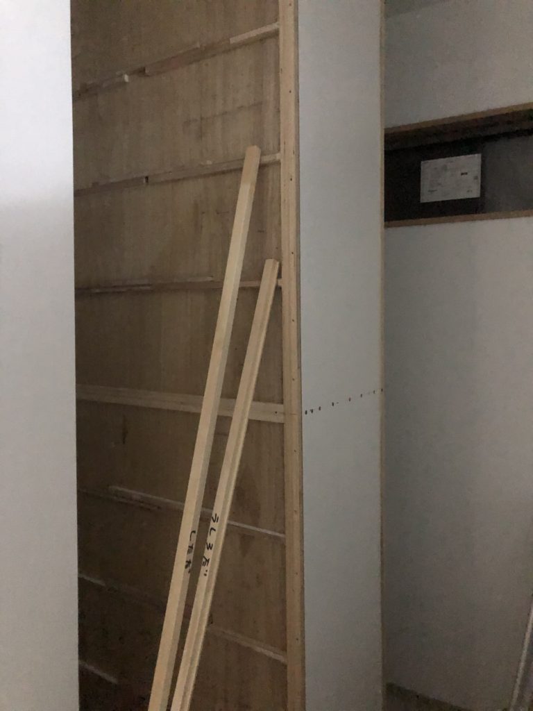 お施主様がお譲り受けたブラインドは天井付け用だったのでブラインドボックスの製作を。