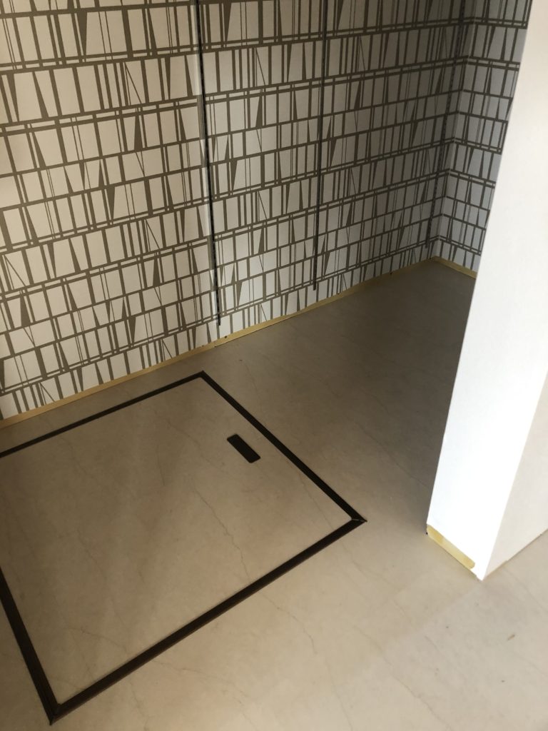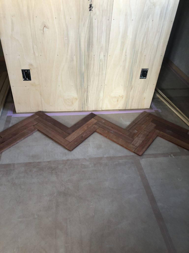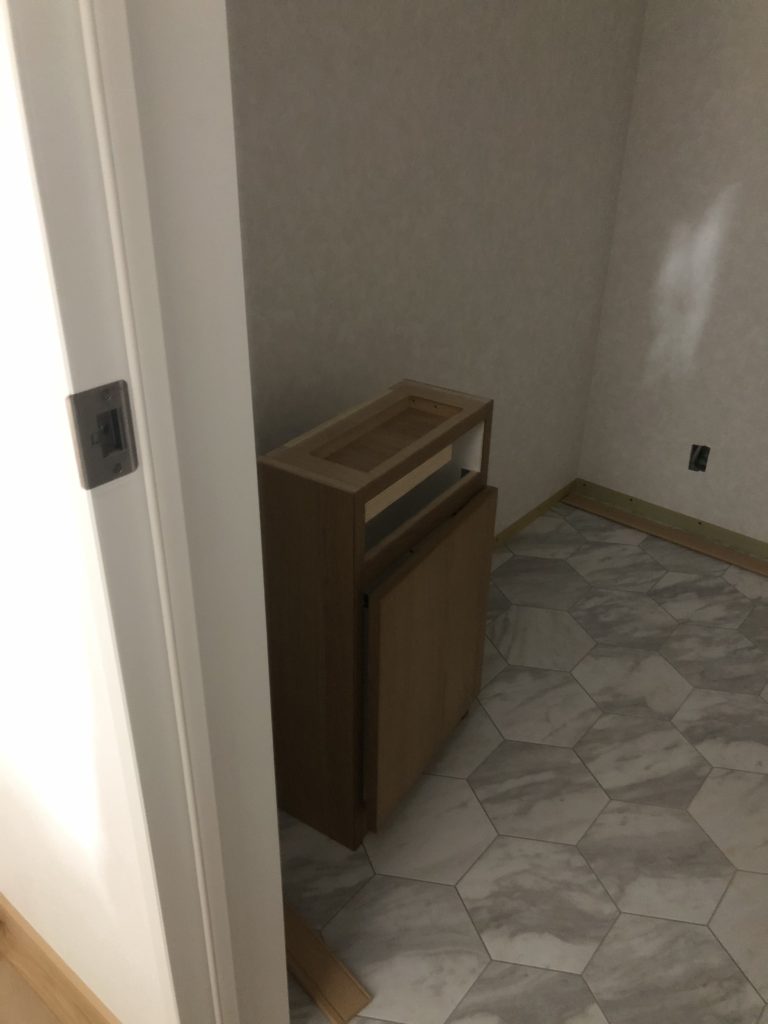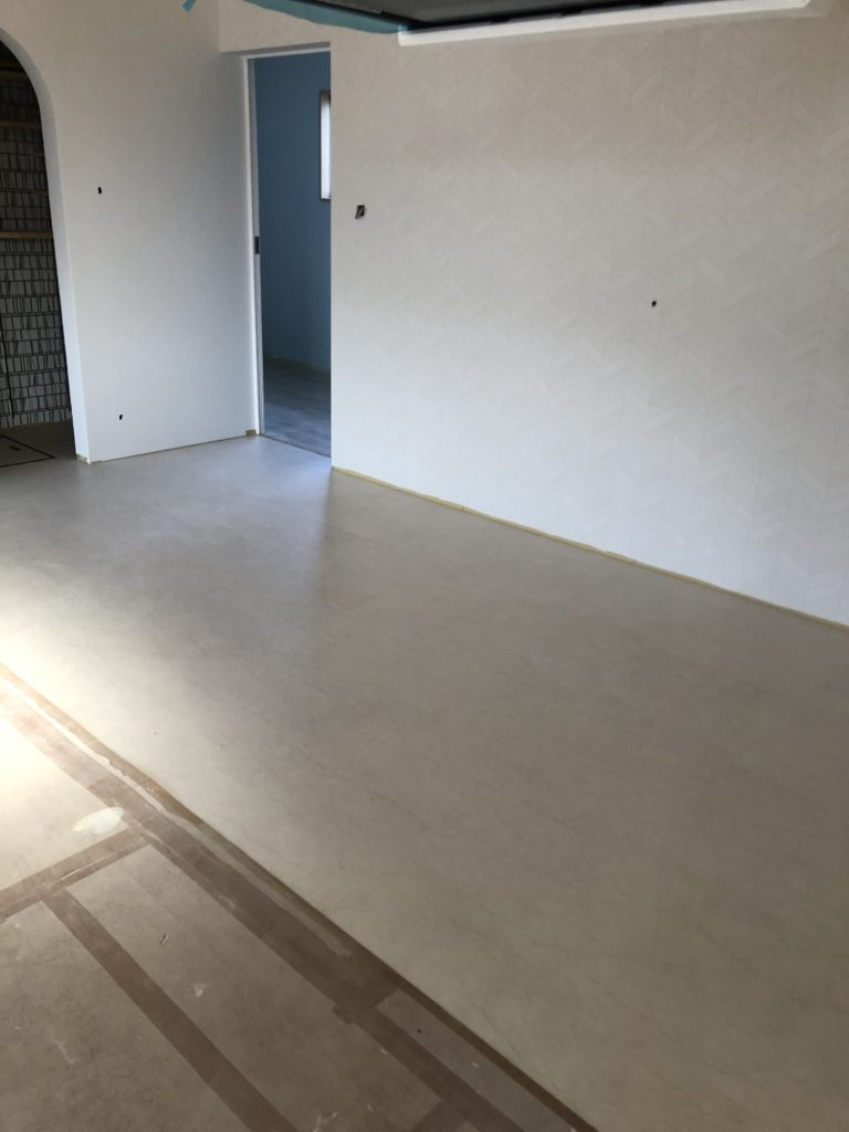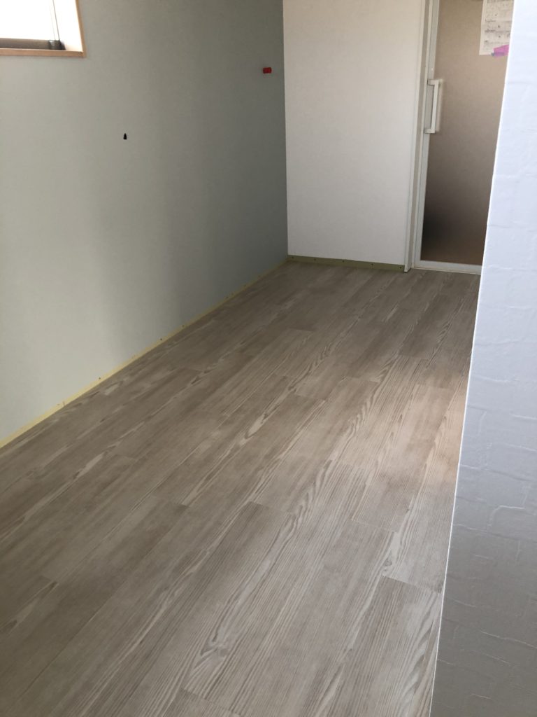 水がかかりやすい脱衣室や油汚れの気になるキッチンはフロアタイルを貼ります。