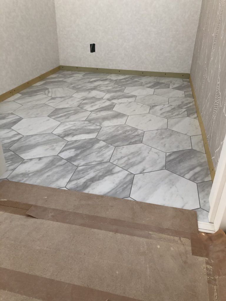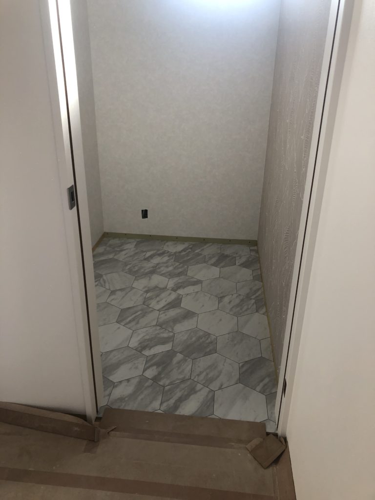 トイレの床はお施主様のご要望でヘキサゴン型を貼って頂きました^ ^