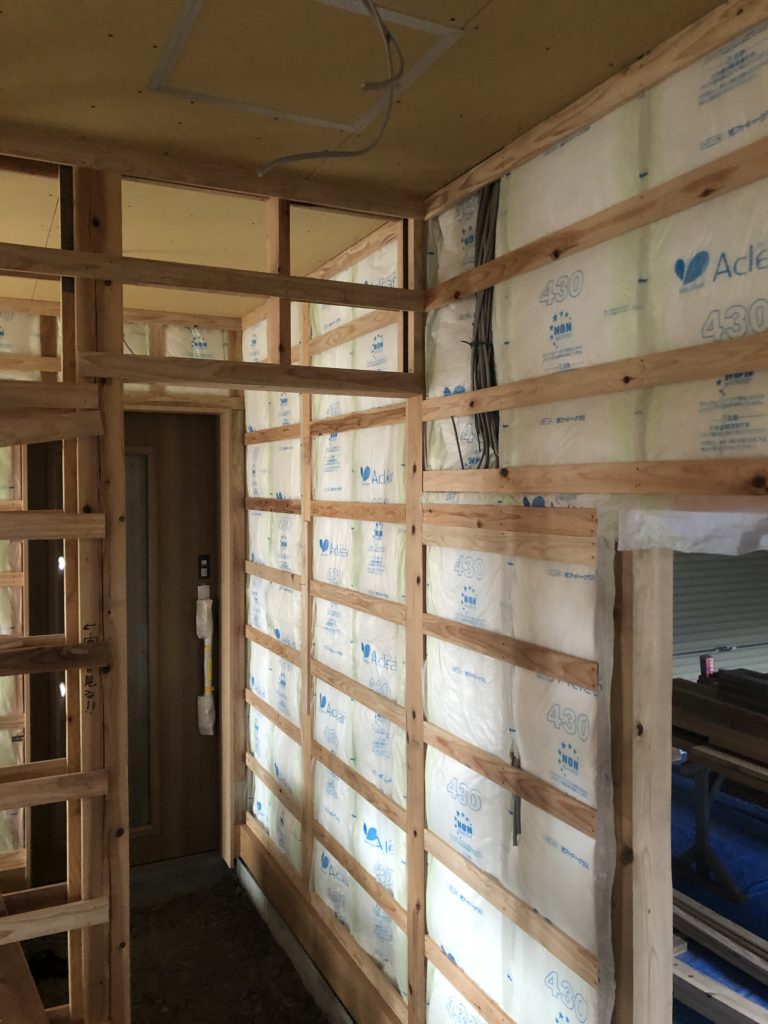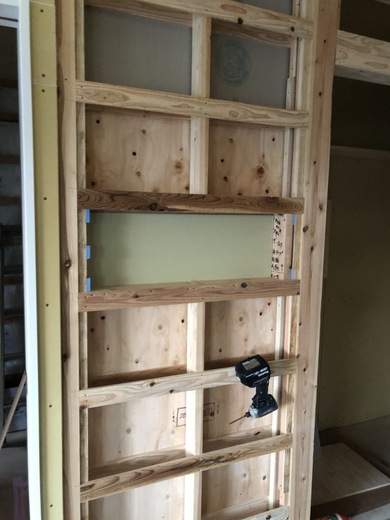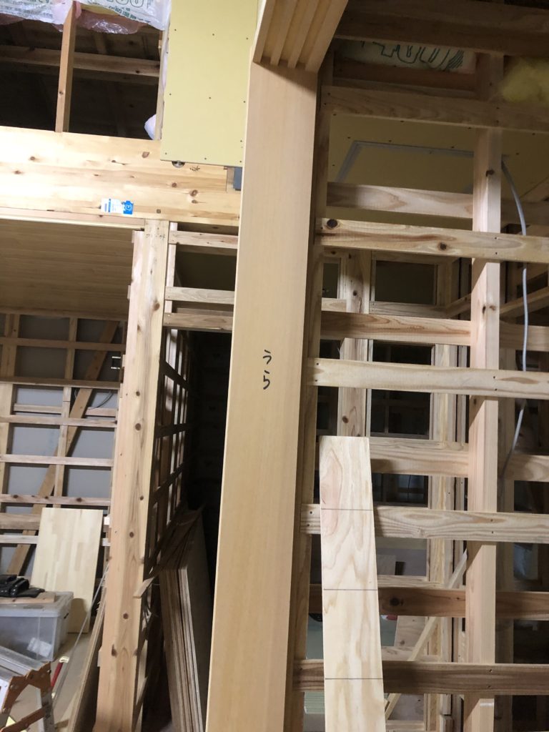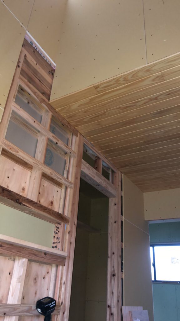 下地は下地板を1尺(303ミリ)ピッチで柱の面に揃うよう取り付けてます。