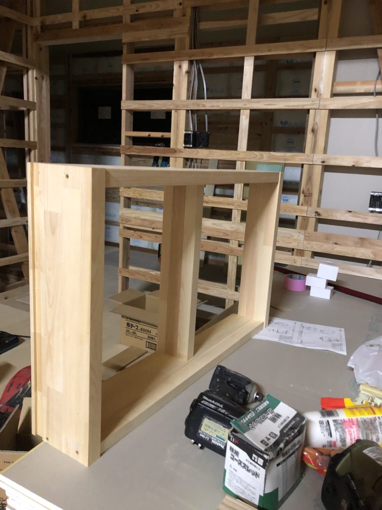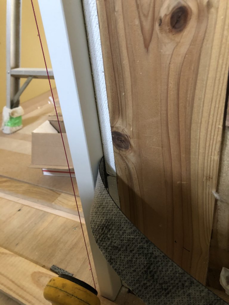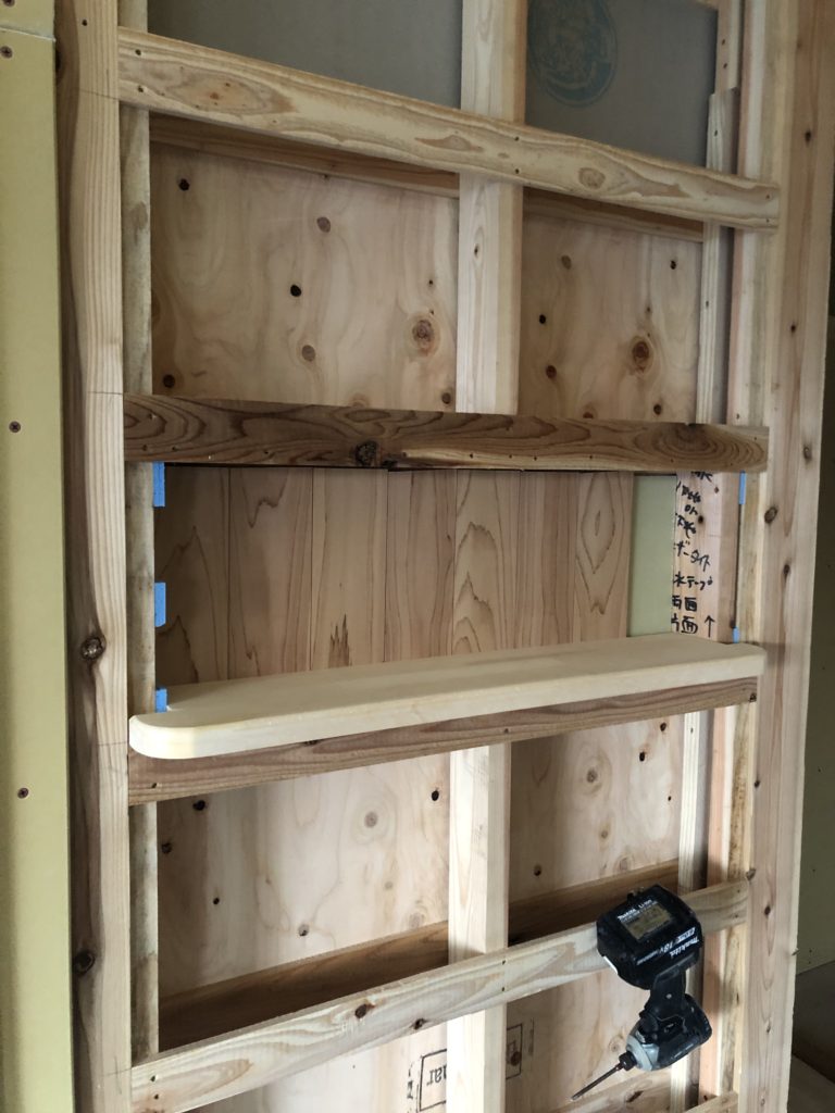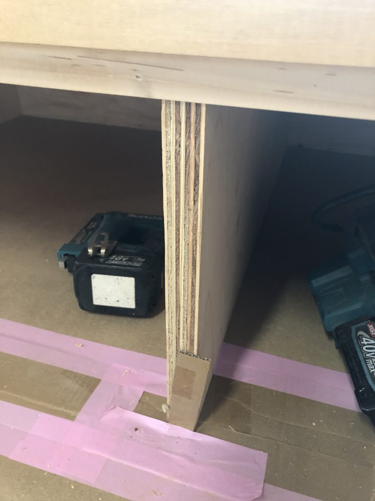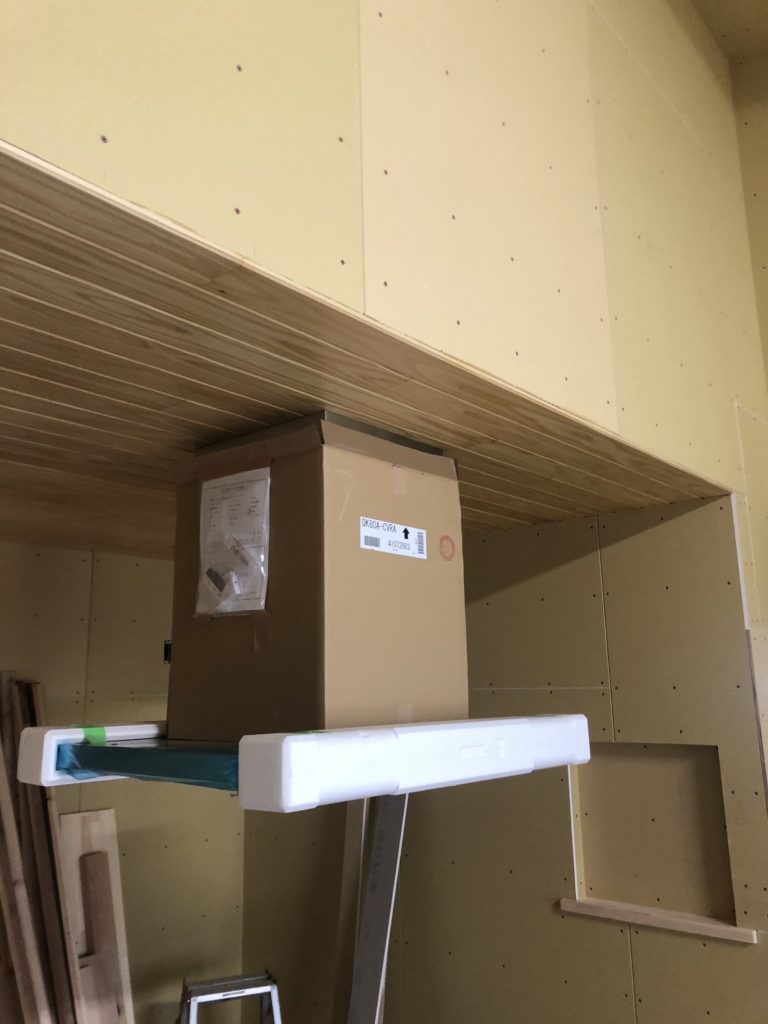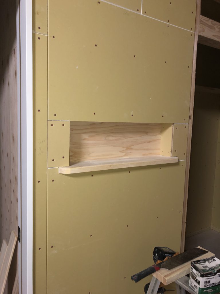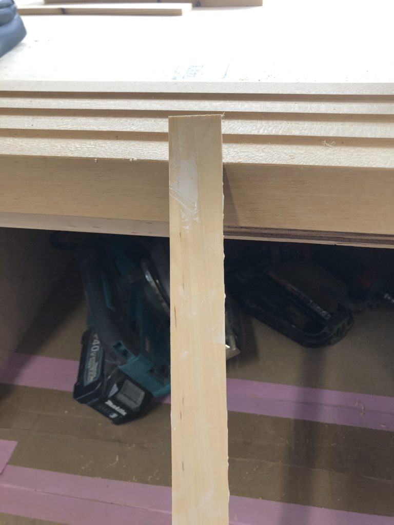 ギリギリまで収納スペースをとりたいので収納側は28ミリのネダレス合板で施工。