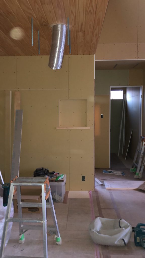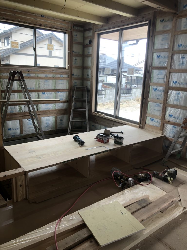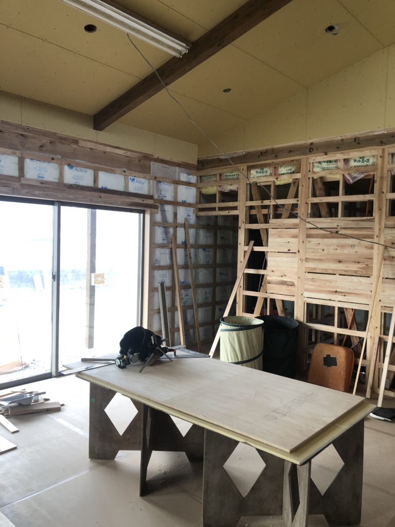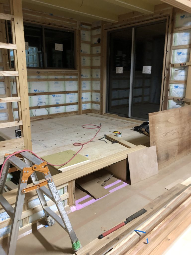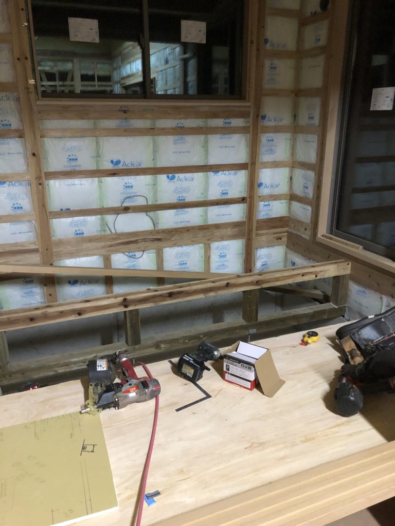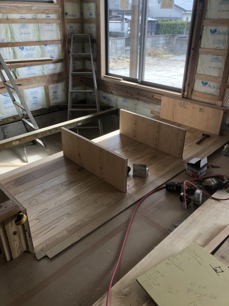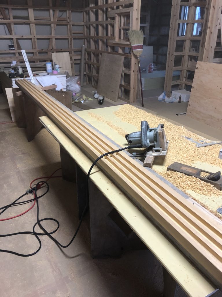 ギリギリまで収納スペースをとりたいので収納側は28ミリのネダレス合板で施工。