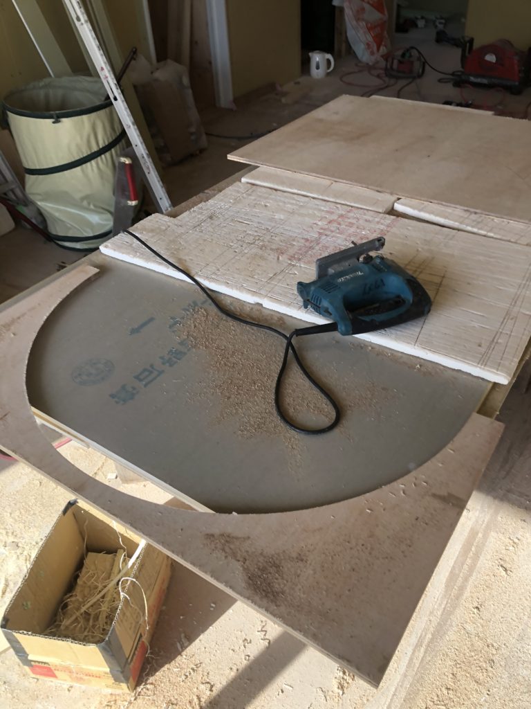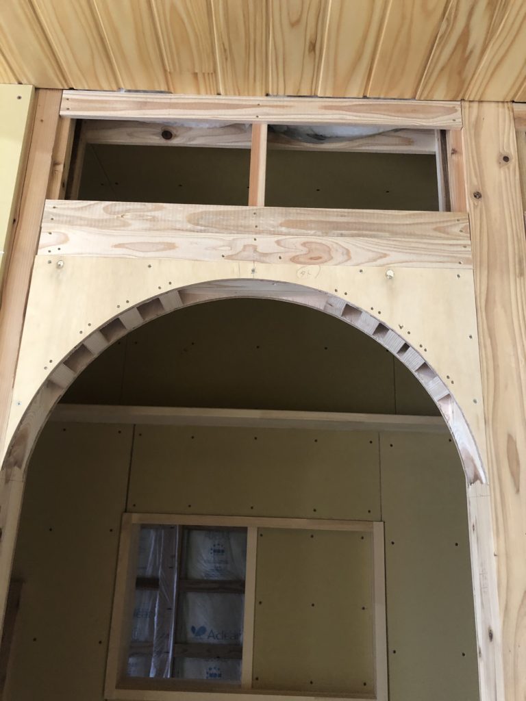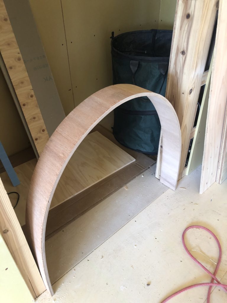 貼って、またまた曲げベニヤを貼り付けたらアーチ開口完成ですわ。
