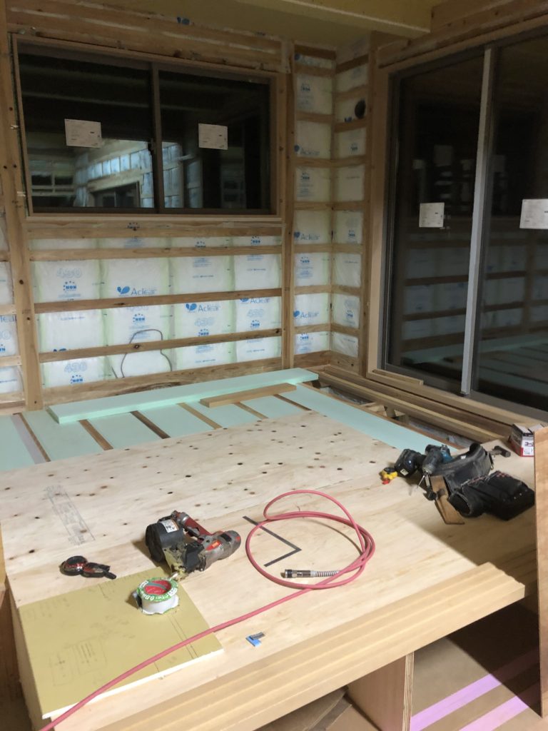 和室は畳なんですけど断熱材も敷き込んでいきます。